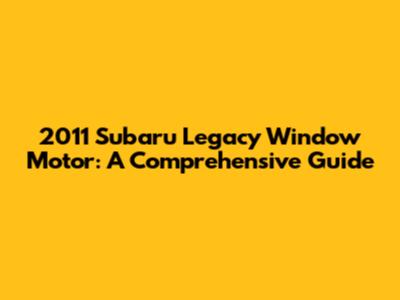 Understanding the 2011 Subaru Legacy Window Motor