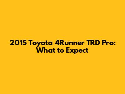 2015 Toyota 4Runner TRD Pro: What To Expect