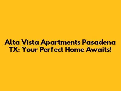 Hey guys! Looking for a sweet spot to call home in Pasadena, TX? Let's dive into why Alta Vista Apartments might just be your dream come true. We're going to break down everything you need to know – from the cozy living spaces to the awesome community vibes. Finding the right apartment can feel like a mission, but with the right info, you'll be making the best choice in no time.