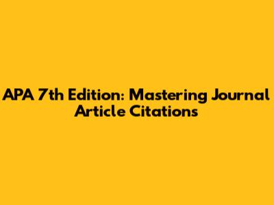 APA 7th Ed: Mastering Journal Article Citations