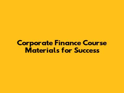 Corporate Finance Course Materials For Success