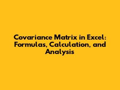 Covariance Matrix In Excel: Formulas, Calculation, And Analysis
