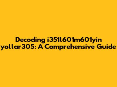 Decoding I351l601m601yin Yollar305: A Comprehensive Guide