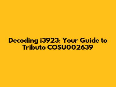 Decoding I3923: Your Guide To Tributo COSU002639