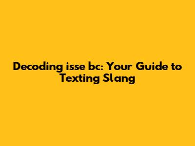 This is not a phrase that is commonly used in professional communication. It is a language that is constantly changing. Texting slang can change very quickly. What's popular today might be outdated tomorrow, so it is necessary to always be up to date and follow its evolution. The usage of this can vary depending on where you are. The meaning might be different depending on your friends, communities, and cultures. While "isse bc" is relatively universal, other text slang terms might have a more localized meaning. In the end, understanding the context is the most important part of deciphering a text message.