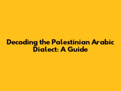 Decoding The Palestinian Arabic Dialect: A Guide