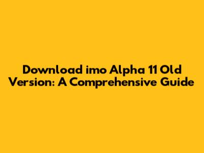 Download Imo Alpha 11 Old Version: A Comprehensive Guide