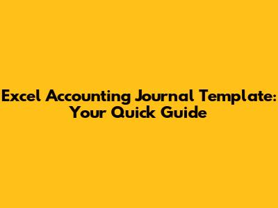 Excel Accounting Journal Template: Your Quick Guide