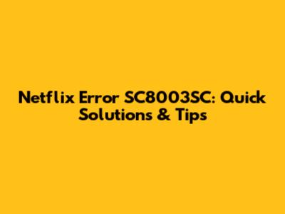 Fix Netflix Error SC8003SC: Quick Solutions & Tips