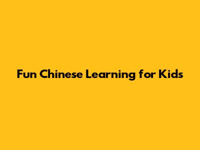Fun Chinese Learning For Kids
