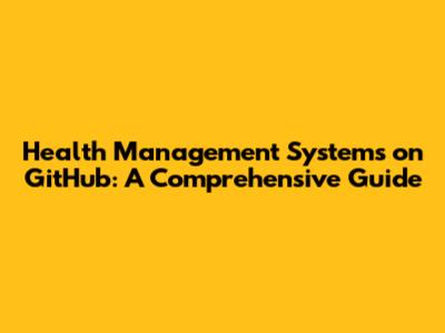 Health Management Systems On GitHub: A Comprehensive Guide