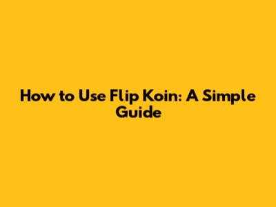 How To Use Flip Koin: A Simple Guide