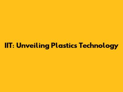 IIT: Unveiling Plastics Technology