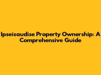 Ipseisaudise Property Ownership: A Comprehensive Guide