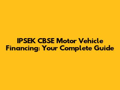 IPSEK CBSE Motor Vehicle Financing: Your Complete Guide