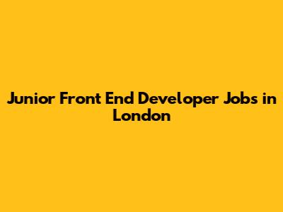 Junior Front End Developer Jobs In London