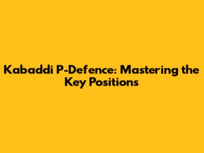 Kabaddi P-Defence: Mastering The Key Positions