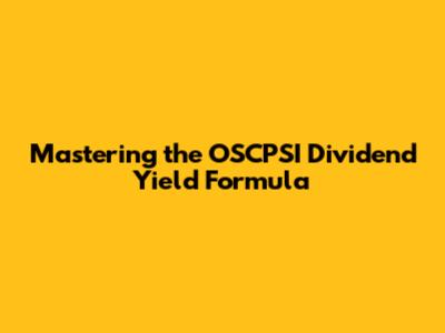 Mastering The OSCPSI Dividend Yield Formula
