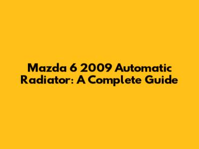 Mazda 6 2009 Automatic Radiator: A Complete Guide
