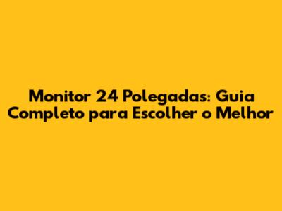 Monitor 24 Polegadas: Guia Completo Para Escolher O Melhor