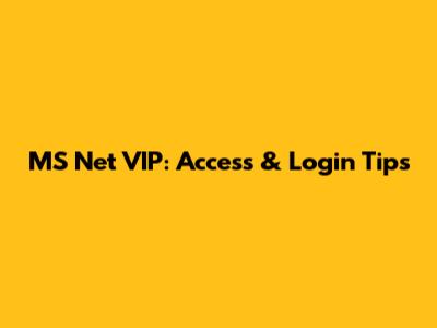 MS Net VIP: Access & Login Tips
