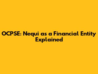 OCPSE: Nequi As A Financial Entity Explained