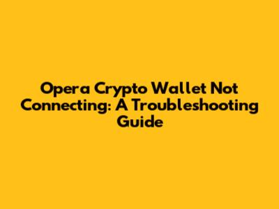 Opera Crypto Wallet Woes: Troubleshooting Connection Issues