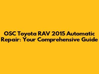 Common Issues in the OSC Toyota RAV 2015 Automatic