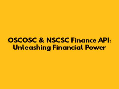 OSCOSC & NSCSC Finance API: Unleashing Financial Power