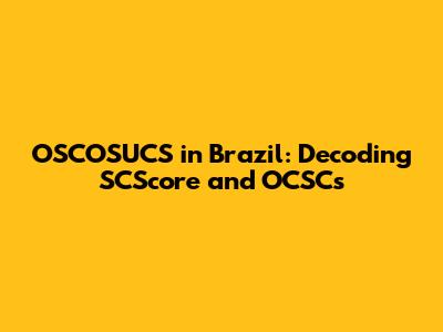OSCOSUCS In Brazil: Decoding SCScore And OCSCs