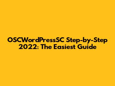 OSCWordPressSC Step-by-Step 2022: The Easiest Guide