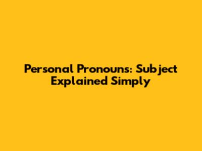 Personal Pronouns: Subject Explained Simply