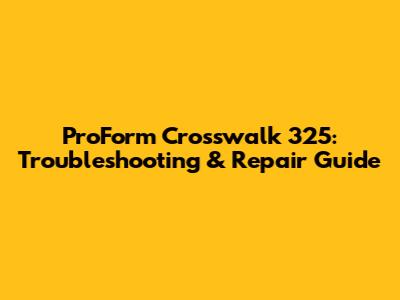 ProForm Crosswalk 325: Troubleshooting & Repair Guide