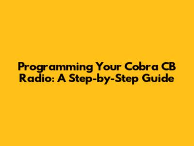 Programming Your Cobra CB Radio: A Step-by-Step Guide