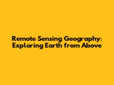 Remote Sensing Geography: Exploring Earth From Above