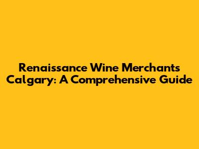 Renaissance Wine Merchants Calgary: Your Guide