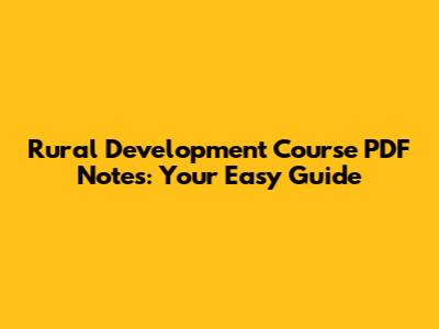 Rural Development Course PDF Notes: Your Easy Guide
