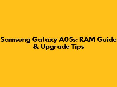 Samsung Galaxy A05s: RAM Guide & Upgrade Tips