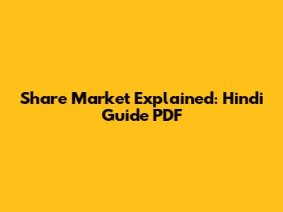 Share Market Explained: Hindi Guide PDF