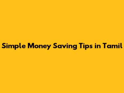 Simple Money Saving Tips In Tamil