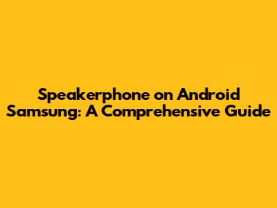 Speakerphone On Android Samsung: A Comprehensive Guide