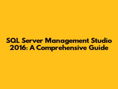 SQL Server Management Studio 2016: A Comprehensive Guide