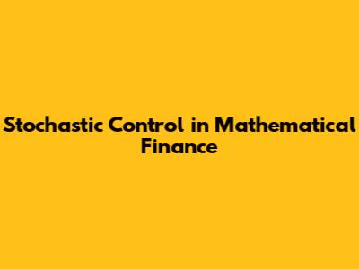 Stochastic Control In Mathematical Finance