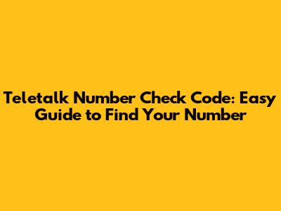 Teletalk Number Check Code: Easy Guide To Find Your Number