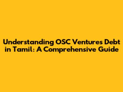 Understanding OSC Ventures Debt In Tamil: A Comprehensive Guide