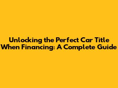 Unlocking The Perfect Car Title When Financing: A Complete Guide