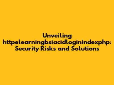 Unveiling Httpelearningbsiacidloginindexphp: Security Risks And Solutions